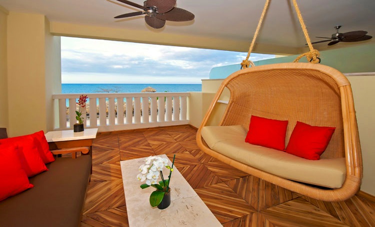 Oceanfront suites with direct Caribbean & beach views Outdoor living rooms with sofa, ceiling fan & wicker swing for 2!